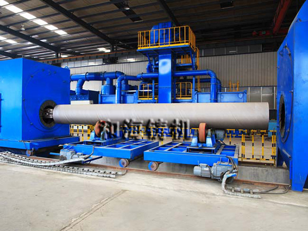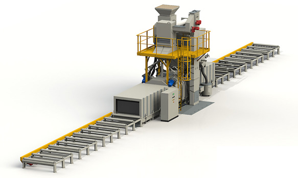 钢结构抛丸机工作原理 1.结构 本机主要功能部件是清理室,室内输送辊道与进出输送辊道、抛...